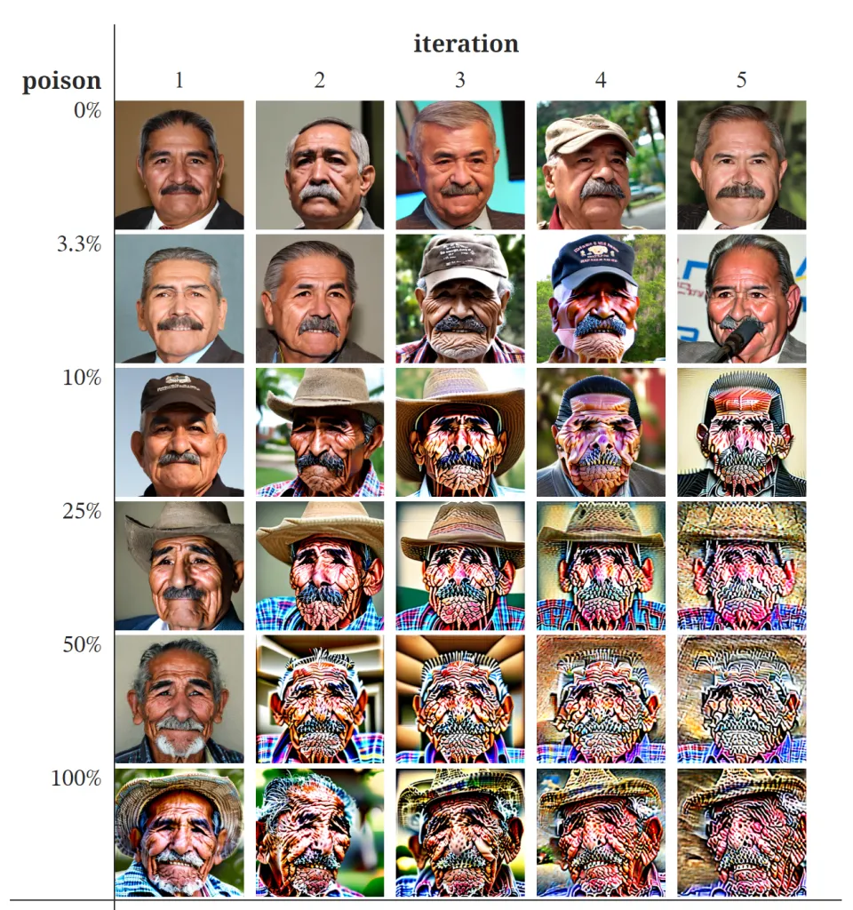 - හතරවන පියවර: දැන්, මීළඟ AI පරම්පරාව - next generation AI පුහුණු කරන්නේ අන්තර්ජාලයේ ඇති අලුත් දත්ත යොදාගෙනයි. නමුත් ඒ දත්තවල දැන් පිරී ඇත්තේ මොනවද? AI ශෛලියට හුරු වූ මිනිස් නිර්මාණ සහ පරණ AI නිර්මාණ!
